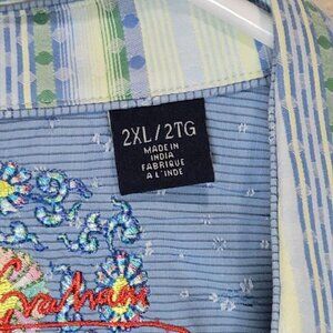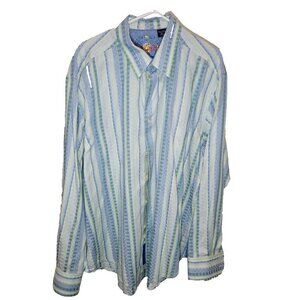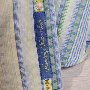 Robert Graham 2XL Knowledge Wisdom Truth White Striped Embroidered Dress Shirt