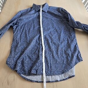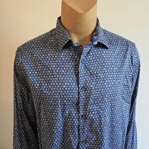 Stylish blue shirt with intricate floral pattern. Ideal for casual outings. Crafted by Robert Graham.