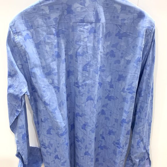 Robert Graham Blue Floral Men's button down shirt Large Dragon Pattern flip cuff