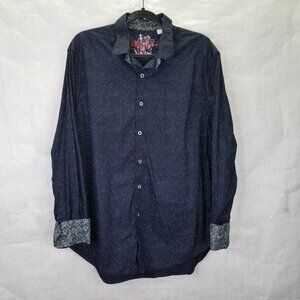 Robert Graham Button Up Shirt Mens XL Flip Cuff Classic Fit Night Sky Star Black