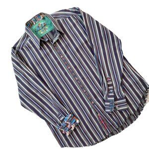 Robert Graham Shirt Mens Size XL Flip Cuff Aztec Southwestern Multicolor Stripe.