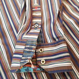Robert Graham Button down Shirt XL Flip Cuff Aztec Brown Blue Stripe
