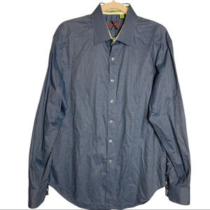 Robert Graham Classic Fit Blue Button Front & Contrast Cuff Shirt Size Large