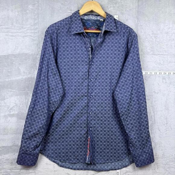 Robert Graham Classic Fit Long Sleeve Button Down Shirt Blue Geometric Men Sz XL