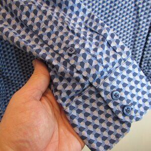 Robert Graham Cotton Blend Blue White Long Sleeve Shirt Geometry Pattern Mens L