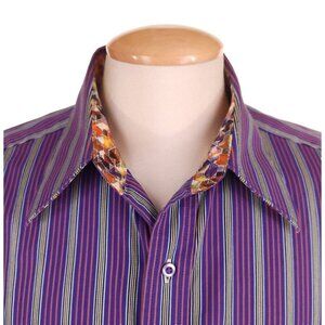 Robert Graham Cotton Embroidered LS Shirt Size XL Mens Cotton Purple Stripe