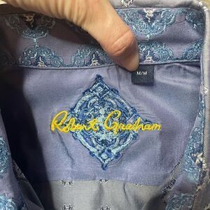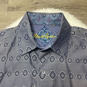 Robert Graham Dress Shirt Flip Cuff Blue Pattern Long Sleeve Mens Medium