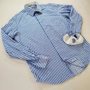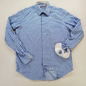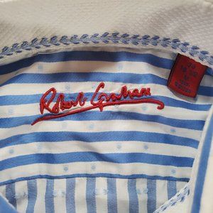 Robert Graham Dress Shirt Men Medium 15.5 / 39 Blue Striped Tailored Fit Vintage