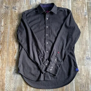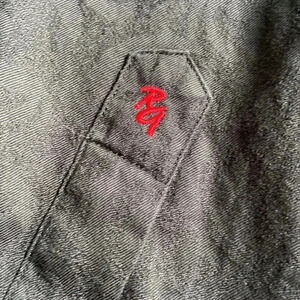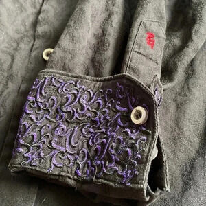 * black in color with black / dark purple detail inside neck and inside of cuffs with shuttle red accent