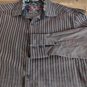 Robert Graham Grey Disappearing Long Sleeve Flip Cuff Button Down Shirt