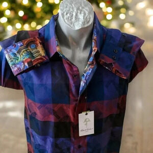 Robert Graham Size Mens Shirt Nutcracker Blue Red Check LS Flip Classic New