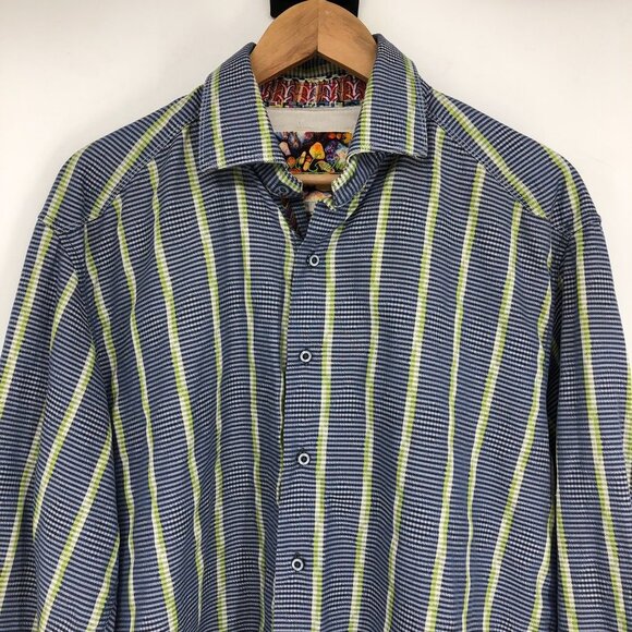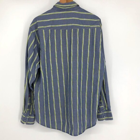 Robert Graham Men’s Blue green vertical stripe button down shirt XL (flaw*)