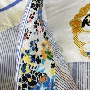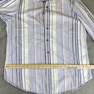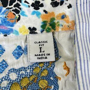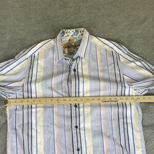 Robert Graham Men's Large Long Sleeve Striped Floral Flip Cuff Button Up Shirt