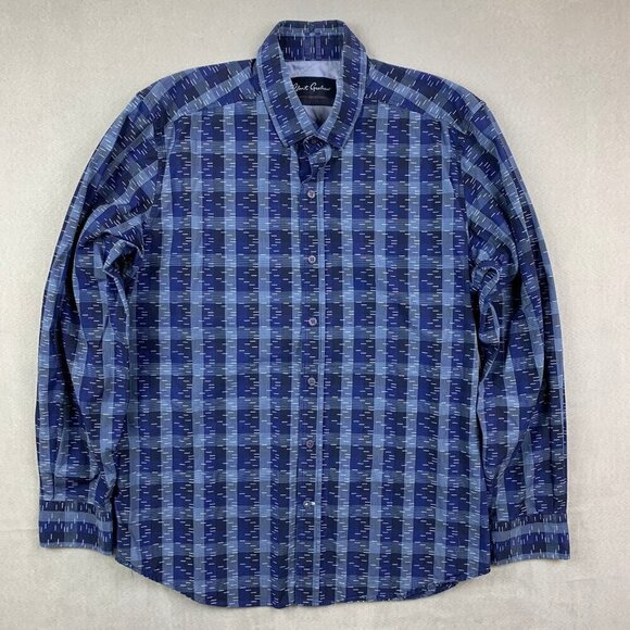 Robert Graham Mens Shirt Large Blue Plaid Button Up Long Sleeve Tailored Stretch