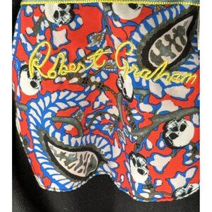 Robert Graham Polo Golf Shirt Mens Size XL w Red Patterned Skulls Button Placket