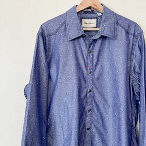 Robert Graham Mens XL Tailored Fit Botanic Ditsy Blue Button Shirt