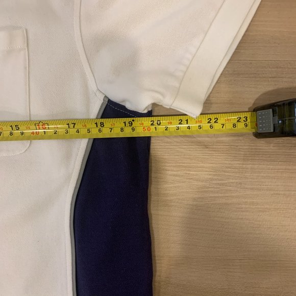 Very nice condition white and Navy short sleeve polo golf shirt by Robert Graham