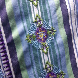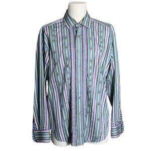 Robert Graham SZ LG Men's LS Shirt -Green, Navy & Mauve Striped, Embroidered