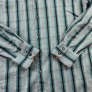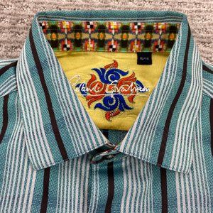 Robert Graham Shirt Men XL Green Teal Striped Button Up Formal Polo Long Sleeve