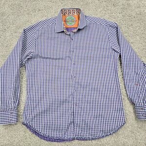 Robert Graham Shirt Mens XL Blue Plaid Ribbon Flip Cuffs Button Up Long Sleeve