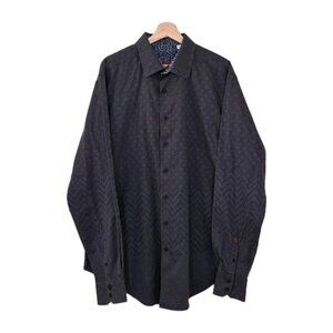 Robert Graham Shirt Mens XLT Gray Textured Flip Up Cuffs LS Embroidery Buttons