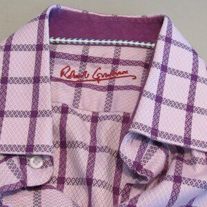 Robert Graham Shirt Purple Checks Diamond Shell Flip Cuffs Medium Never Worn EUC