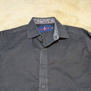 Robert Graham Subtle Patterned Black Dress Shirt Button Down Men Size Large