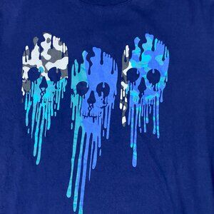 Robert Graham T Shirt Men's Medium Blue Dripping Skull Melting Skulls Cotton