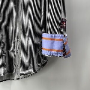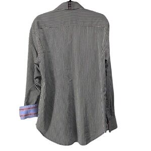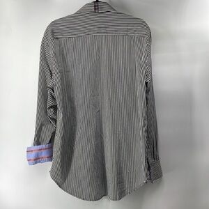 Robert Graham X flip cuff striped button shirt business standout suit sz Lg c
