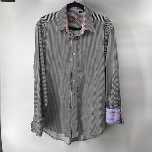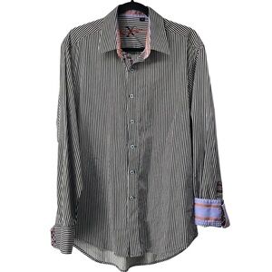 Robert Graham X flip cuff striped button down shirt business standout suit sz Lg