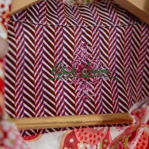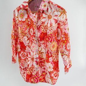 Robert Graham bold print blouse with Pink, red & green flowers embroidery | S