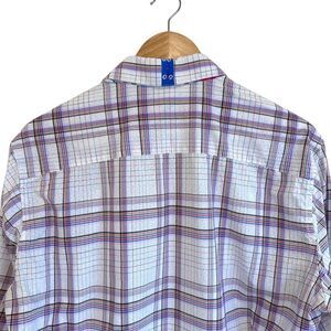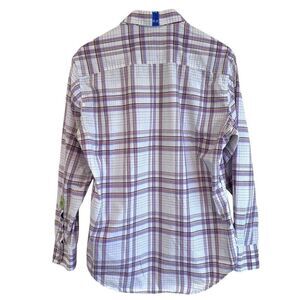 In excellent condition. Robert Graham X men's long sleeve button up shirt. With a white background and a purple plaid pattern, this shirt is perfect for the office or heading out to dinner. 100% cotton with buttons at the cuffs and all the cool details that Robert Graham is known for. Flat lay measurements: 22” pit to pit, 30.5” length.
