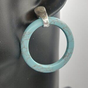 Fantastic RLM Soho Signed (Back of earring and butterfly closure) faux Turquoise silver round hoop earrings.