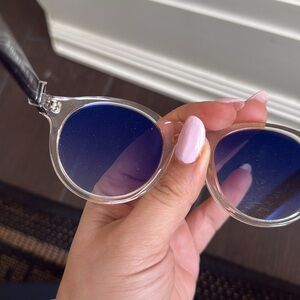 Retro feeling sunglasses that are perfect for the looking cool in the sun. Not polarized. Framing around is a light tan colour.