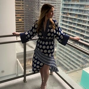 Rodriguez’s blue wrap dress is A MUST for the upcoming spring season! Featuring a funky pattern and asymmetrical bad wing sleeves. GET IT GURL!