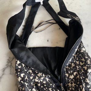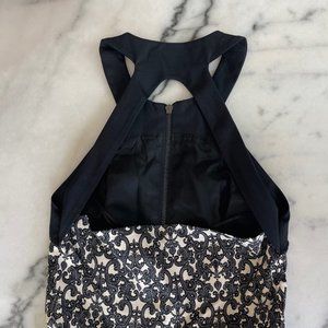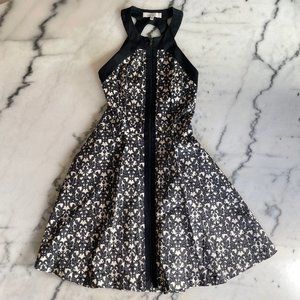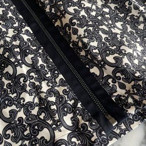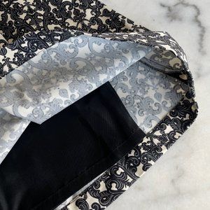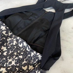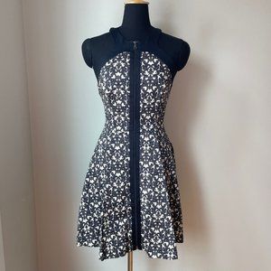 Incredible detail and quality, this Robert Rodriguez dress has a gorgeous black and white paisley print, exposed zipper that runs down the front of the dress, and inseam pockets on the side. Made from a beautiful thicker fabric, it's fully lined. Never worn, it's in like-new condition. Amazing fit, tucks in at the waist and flares out and holds it's shape at the hem. Fabric has a small amount of stretch.