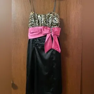 Black pink and leopard prom dress the one shoulder strap needs to be sewn back on