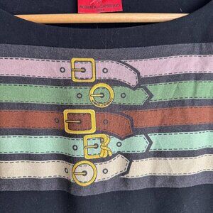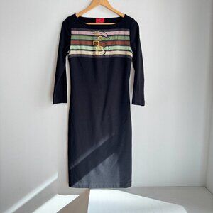 Roberta Di Camerino Belt Print Black Bodycon Dress 6.