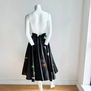 Roberta Einer Black Circle Satin Skirt w Phrases XS
