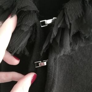 Roberta Scarpa Virgin Wool Cardigan with Silk Ruffle Trim Italian Luxury 12 (46)