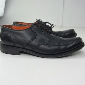 Roberto Cameron Men's Black Leather Oxford Lace Up Detailed Stitching Dress Shoe