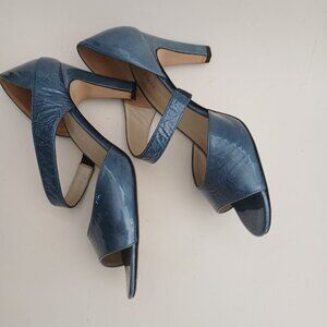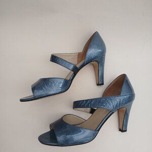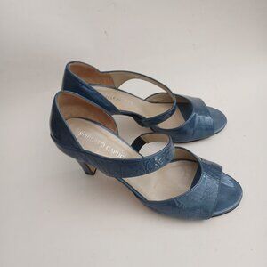 Roberto Capucci Firenze Italy Light Blue Patent Leather Open Toe Shoes Size 8