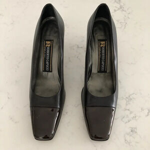 Roberto Capucci Vintage Leather + Patent Slip On High Heel Designer Shoes Made in Italy Chocolate Brown