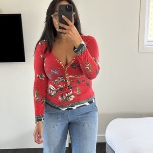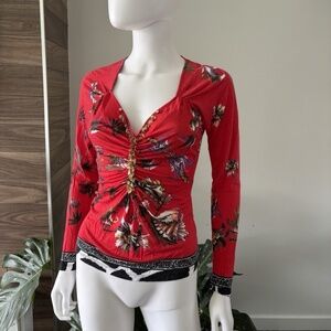 Roberto Cavalli CLASS *Vintage* Sweater Long Sleeve Red Floral Sz 8 US Authentic