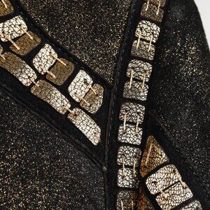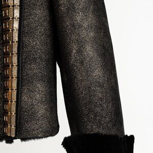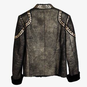 Roberto Cavalli Embellished Black Gold Sheepskin Jacket