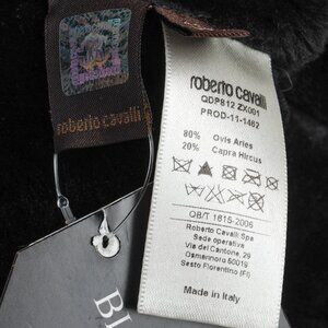 This Roberto Cavalli jacket in gold tinged black sheepskin and trimmed in premium goatskin, exudes over the top luxury. Featuring a sleek, fitted silhouette, and golden embellishments throughout, it effortlessly elevates any outfit. Add a touch of opulence to your wardrobe with this statement piece.
