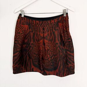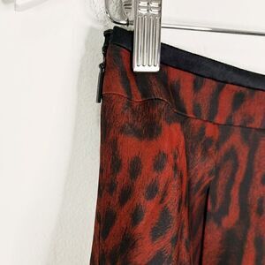 Roberto Cavalli Red Silk Leopard Print Pleated Skirt