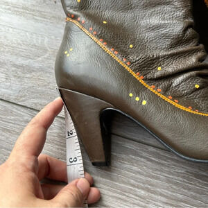 Roberto Vianni Brown Leather Printed Heeled Slouchy Ankle Boots