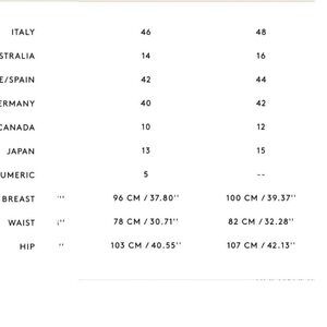 Sizing Chart from Roberto Cavalli’s website in listing photos