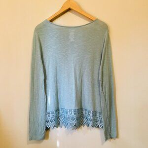 Robin Egg Blue Lace Hem Long Sleeve Rayon Top